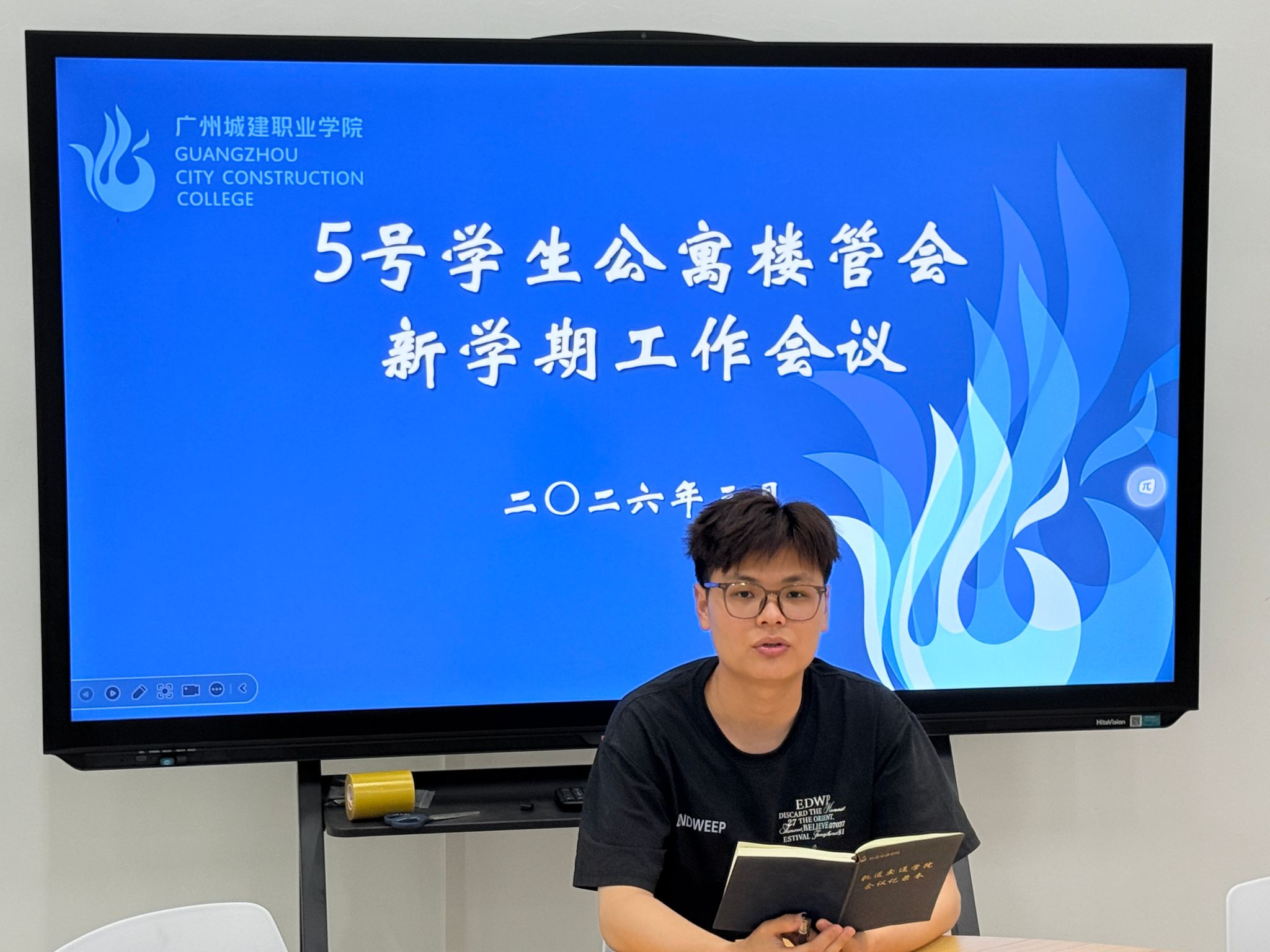 会上,徐奕帆老师首先肯定了上学期楼管会在卫生督查、文化活动等方面的工作成效。结合新学期学生返校后的实际需求,他对全体成员提出三点要求:一是明责担当,主动对接社区建设任务,做到心中有责、履职有方;二是严于律己,在遵规守纪、维护秩序、文明风尚上做好表率,带动身边同学;三是挖掘潜能,鼓励结合专业特长参与社区文化策划与服务实践,将学生公寓打造成“安居”与“育人”并重的生活阵地。
