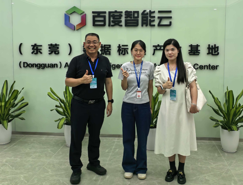 在百度智能云数据标注基地,项目负责人宁经理陪同参观并介绍了基地建设情况。该基地依托百度人工智能与云计算技术优势,建设高质量数据集智能标注及大模型测评中心,服务大湾区人工智能产业链。宁经理希望与学院在人才培养、实习就业、课程共建等方面开展务实合作,实现校企互利共赢。